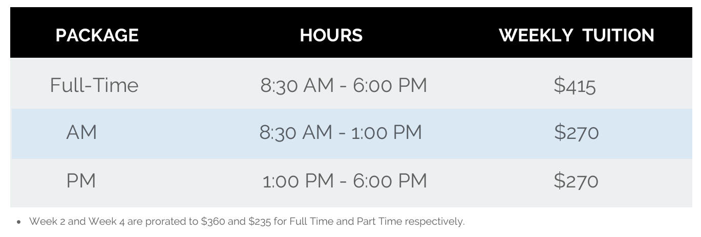 As a friendly reminder, please drop off and pick up your children within our hours of operation. Sunshine School Summer Program operating hours are 8:30am - 6pm. If a child is dropped off early or picked up later than the scheduled time, families shall be assessed a fine of $1.00 per minute for each minute early/late.